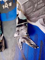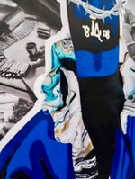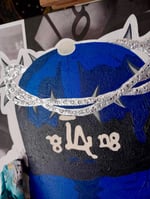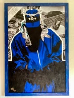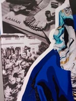 24x36(framed), Acrylic paint, silver leaf, rhinestones, clipped paper, and fabric