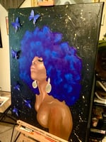 30x40 in. acrylic, paint pen, gold leaf, and silk butterflies on canvas, currently being displayed at Bainbridge Island Museum of Art.